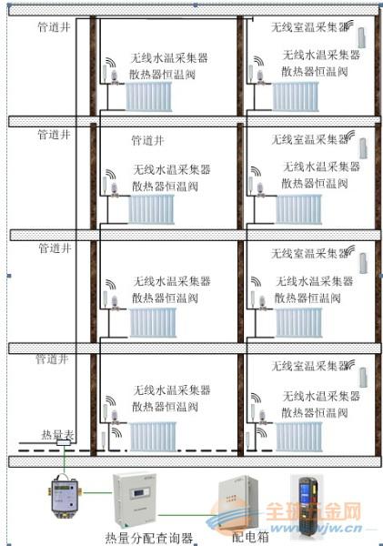 系統(tǒng)組成:流溫法熱分配裝置由熱量總表、熱量分配器、溫度采集處理器、熱量查詢器等設(shè)備組成。